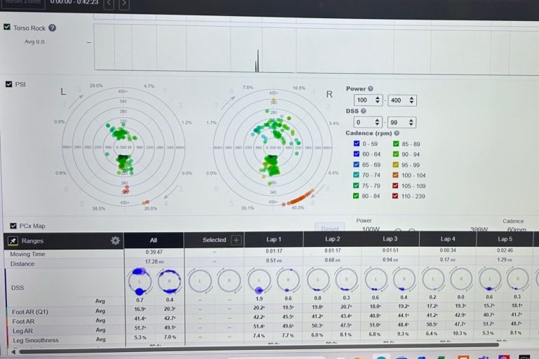 Every fitting includes a pedal analysis review with correctional advice and tips for improvement. This analysis also helps us to see what is going on in the real world with your body when cycling.